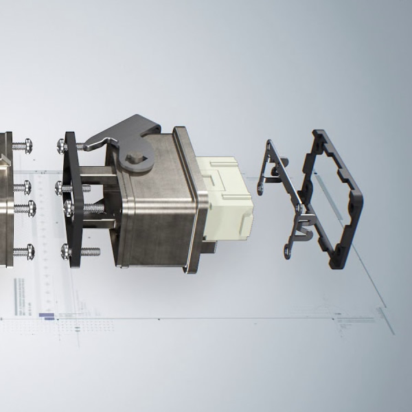 V 系列帶有超堅固的垂直鎖扣不銹鋼槓桿,用於高強度保護的環境。提供 IP69 防水密封聯結和抗震性,使其成為多種應用的完美解決方案。工業泛用型的 JEI 系列,也採取此結構設計,垂直鎖扣材質為鍍鋅鋼,提供高性價比的選擇。
